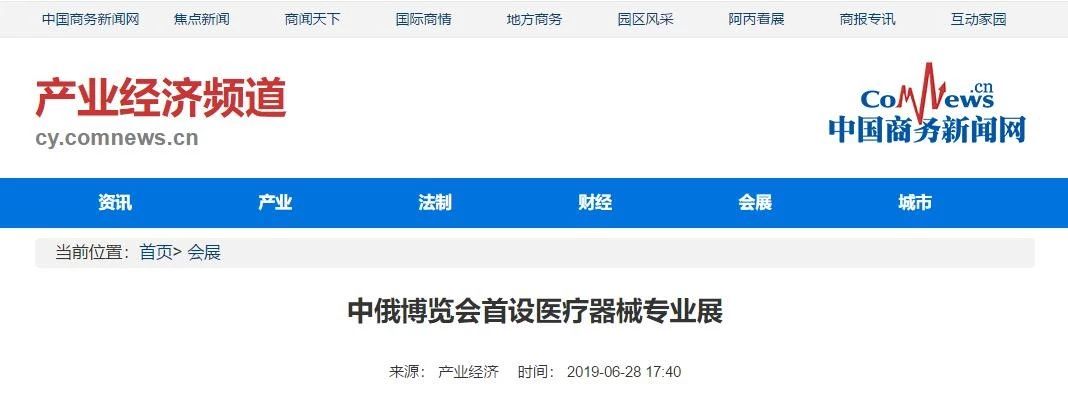 | 中國商務(wù)新聞網(wǎng)報道中俄博覽會首設(shè)醫(yī)療器械專業(yè)展 | |