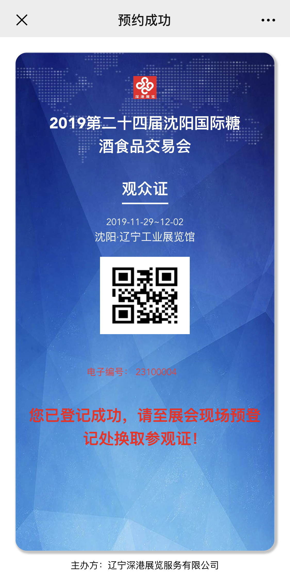 第四步:注冊成功后,即可收到預(yù)登記二維碼。